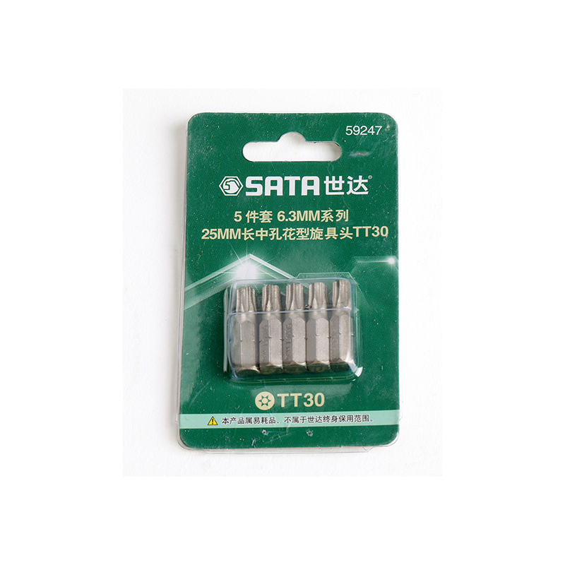 世達6.3mm系列25mm長中孔花型旋具頭T30 |