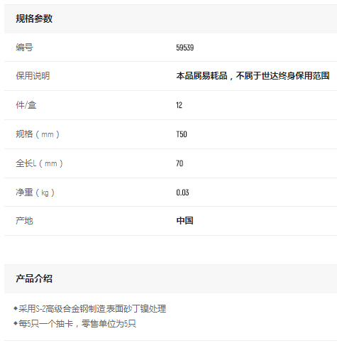 產(chǎn)品名字:世達(dá)5件套8MM系列70mm長(zhǎng)花型旋具頭T50