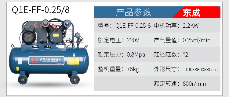 產(chǎn)品名字:東成皮帶式空氣壓縮機FF-0.25/8