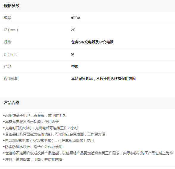 產(chǎn)品名字:世達(dá)18LED鋰電充電式手電筒