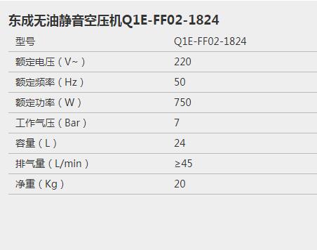 產(chǎn)品名字:東成無(wú)油靜音空壓機(jī)Q1E-FF02-1824