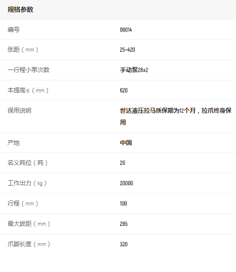 產(chǎn)品名字:世達分體式液壓拉馬20噸