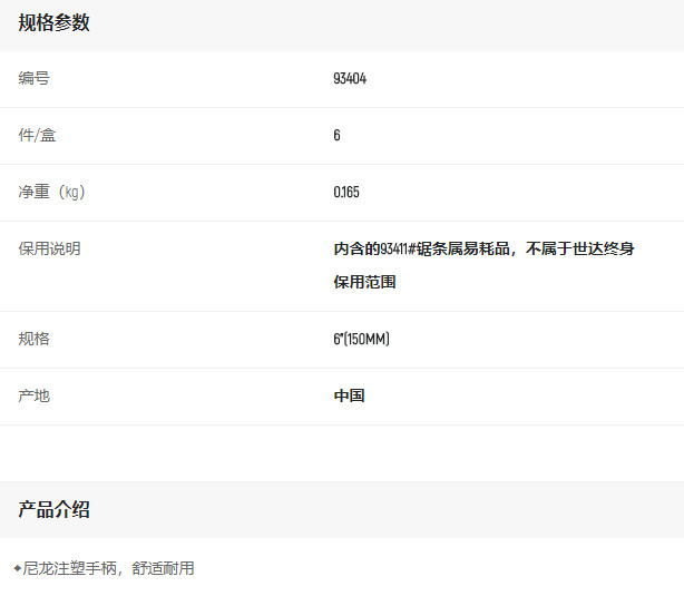 產(chǎn)品名字:世達(dá)迷你型鋸弓6寸